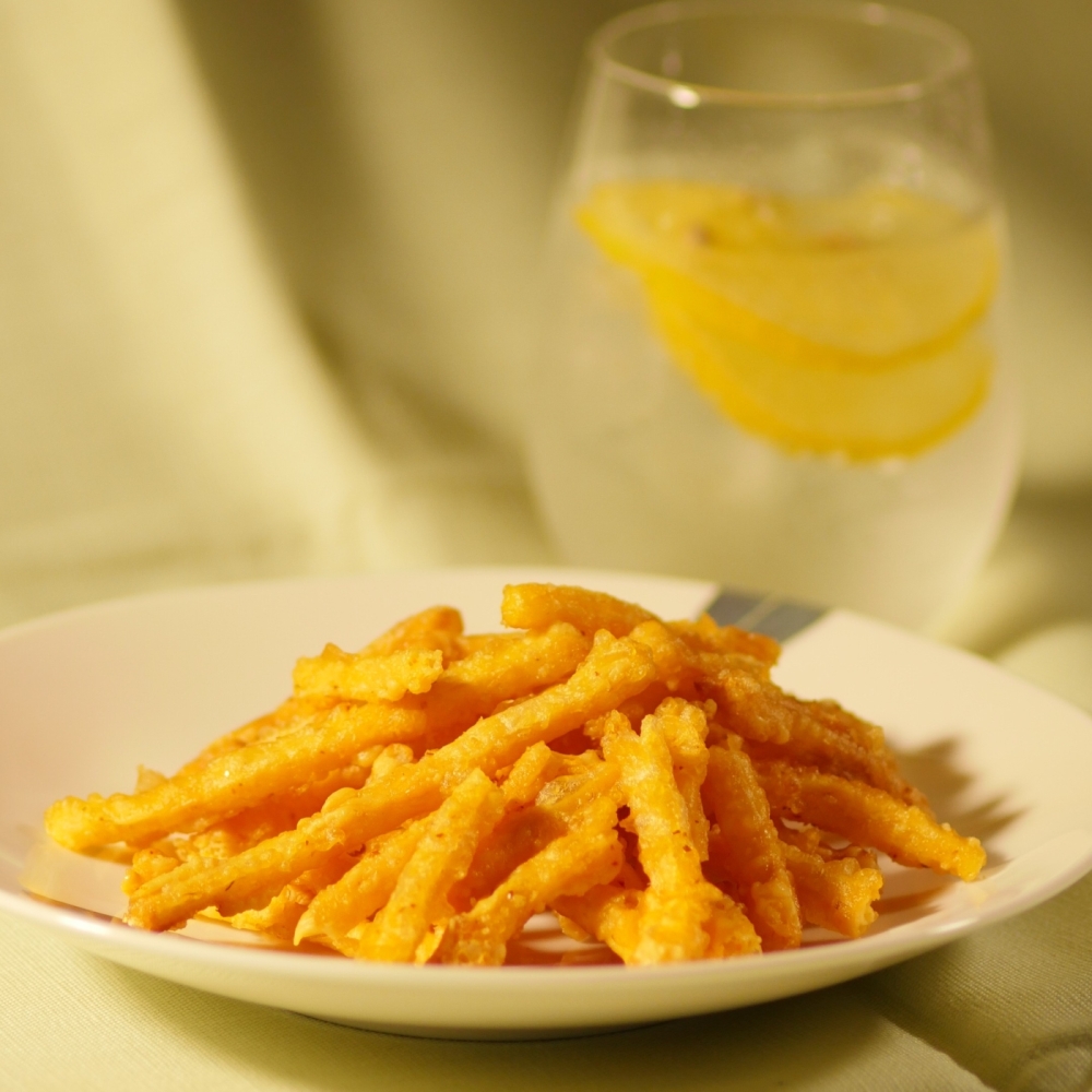 チェダー、クリーム、カマンベールの3種類のチーズをブレンドし、ころもに包んで揚げました。もっちりとした食感で、絶妙なピリ辛とコクのある旨みが特徴です。