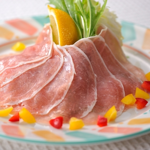 フランス産豚ロース肉使用。塩角がなくマイルドでコクのあるドイツ岩塩を使用。スモークの薫香が口の中にひろがります。