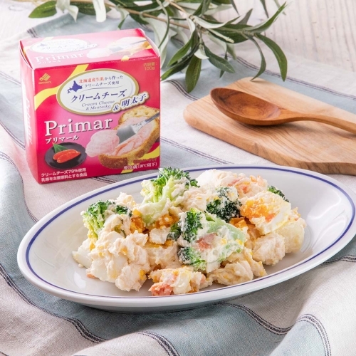 原材料名 プロセスチーズ(北海道製造)、辛子めんたいこ(小麦・大豆を含む)、クリーム/調味料(アミノ酸等)、ベニコウジ色素、保存料(ソルビン酸K)、発色剤(亜硝酸Na)、香辛料抽出物