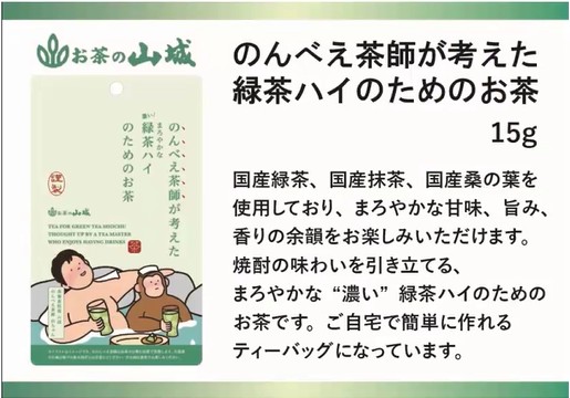 のんべえ茶師がこだわったまろやかな甘み、甘み、香りの余韻、ぺットボトルやリキッドでは出せない生の緑茶を味わって頂ける、焼酎好きのための緑茶です。