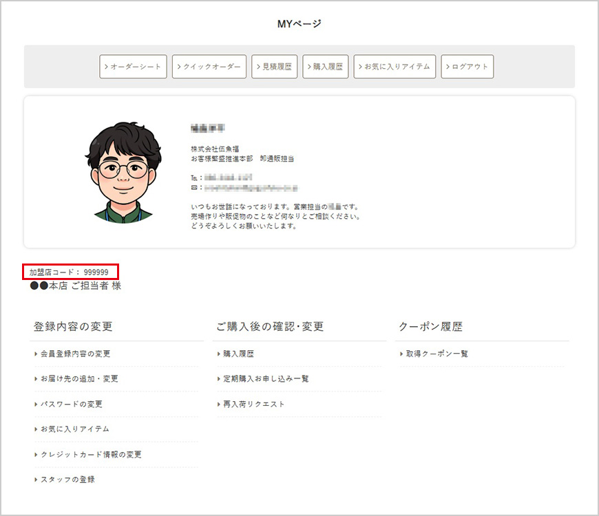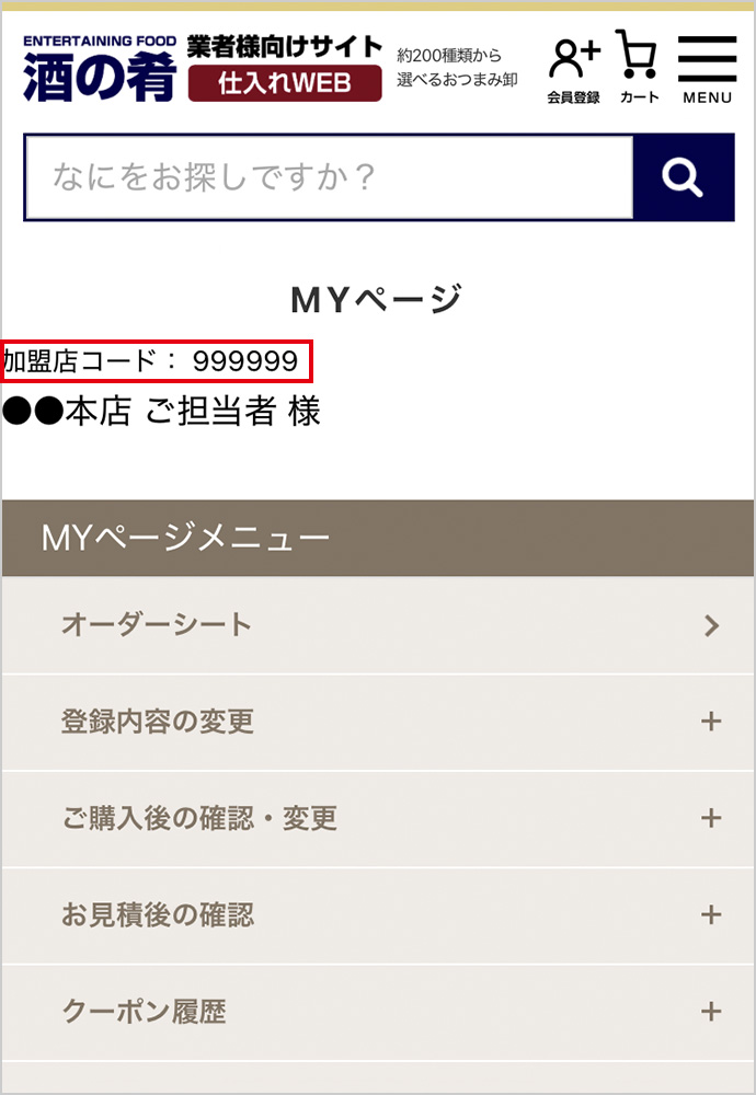 ※加盟店コードはMYページよりご確認いただけます。<PC画面>